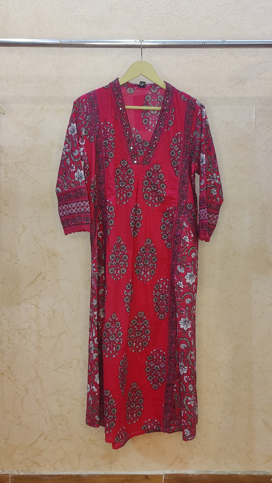 S-38 / Cotton / Red M-40 / Cotton / Red L-42 / Cotton / Red XL-44 / Cotton / RedPure Cotton kurti with pant and dupatta M9920/SS
