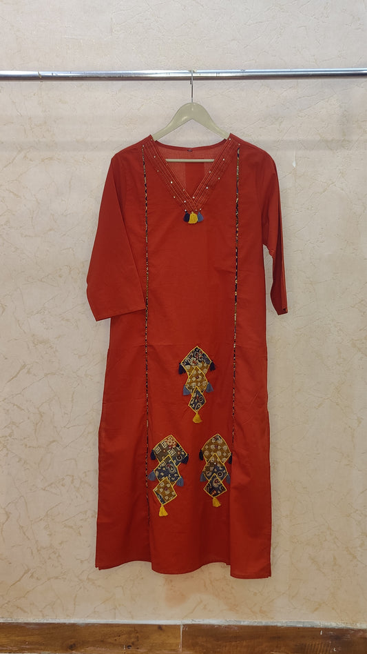 S-38 / Cotton / Rust M-40 / Cotton / Rust L-42 / Cotton / Rust XL-44 / Cotton / RustPure Cotton kurti with pant and dupatta M91025/SS