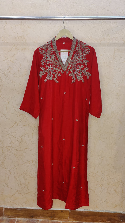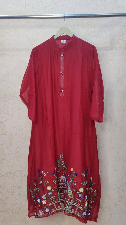 Red / S-38 / Mul Chanderi Red / M-40 / Mul Chanderi Red / L-42 / Mul Chanderi Red / XL-44 / Mul ChanderiMul Chanderi Kurti with pant and dupatta set. M92100