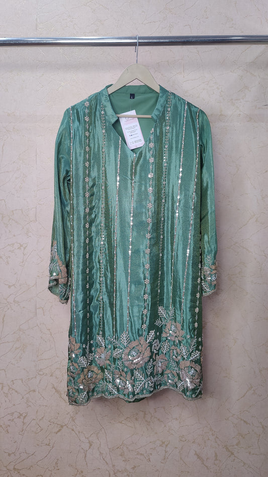 Green / S-38 / Silk Green / M-40 / Silk Green / L-42 / Silk Green / XL-44 / SilkPure Tissue Silk Co-ord Set. M91850