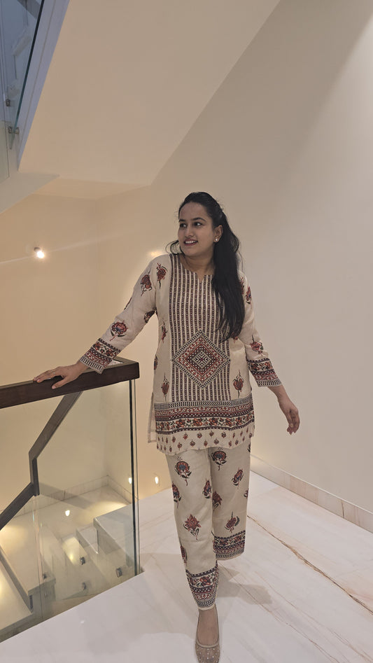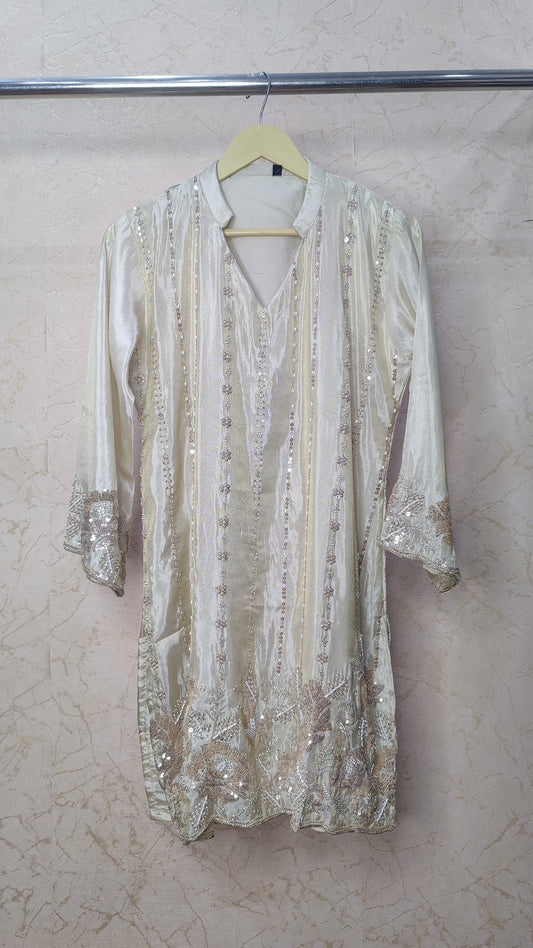 Beige / S-38 / Silk Beige / M-40 / Silk Beige / L-42 / Silk Beige / XL-44 / SilkPure Tissue Silk Co-ord Set. M91850
