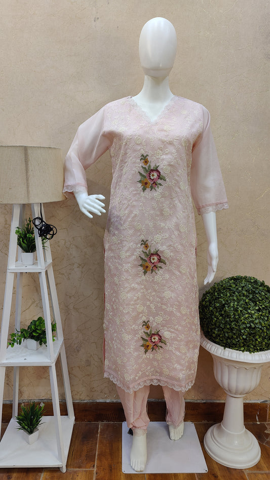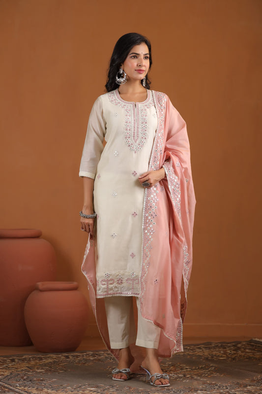 S-38 / Creem / Jamdani Silk L-42 / Creem / Jamdani SilkJamdani kurti with pant and Dupatta M91970/FL
