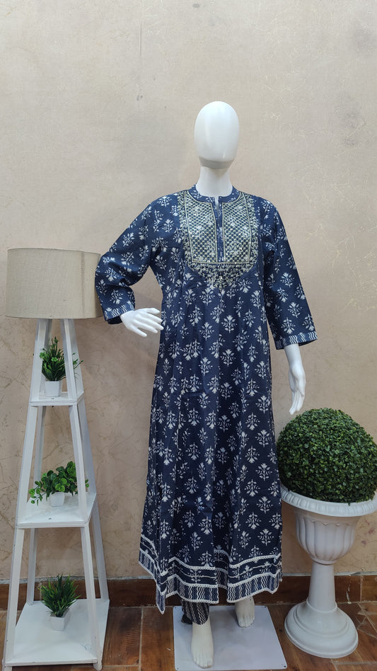 Muslin Anarkali kurti with pant and Dupatta HM91485
