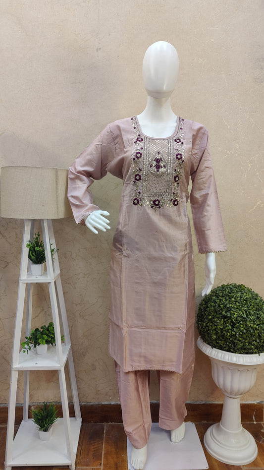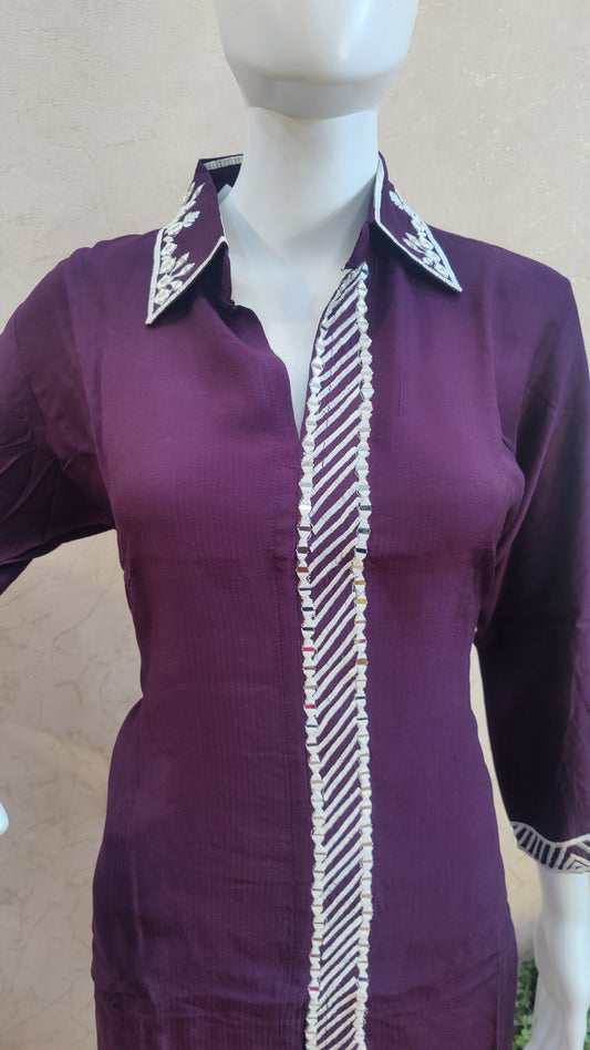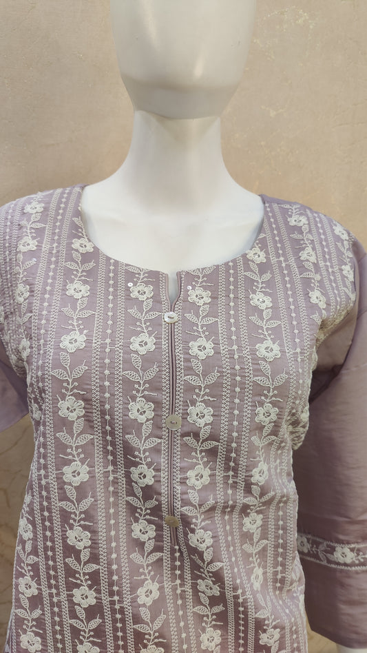 Purple / S-38 / Mul Chanderi Purple / M-40 / Mul Chanderi Purple / L-42 / Mul Chanderi Purple / XL-44 / Mul ChanderiMul Chanderi Kurti with pant and dupatta set M91425GB