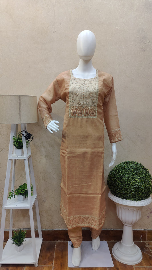 Brown / S-38 / Mul Chanderi Brown / M-40 / Mul ChanderiMul Chanderi Kurti with pant and dupatta set. M92400