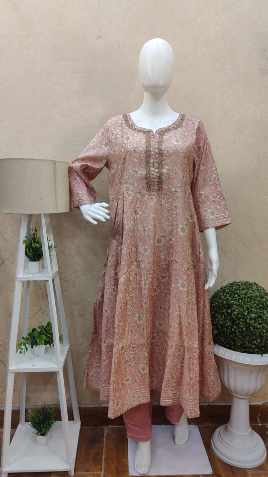 Muslin Anarkali kurti with pant and Dupatta JM91565