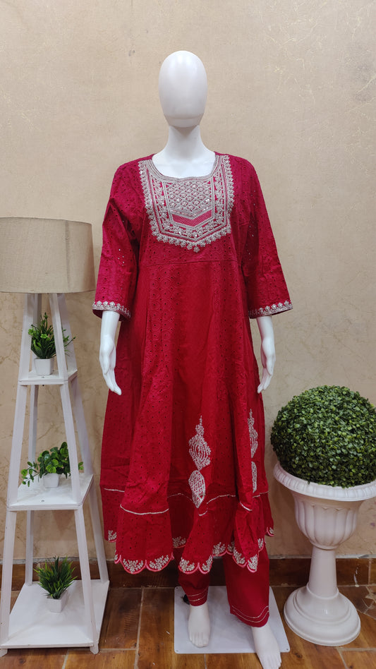 Red / M-40 / Mul Chanderi Red / L-42 / Mul ChanderiMul Chanderi kurti with pant and dupatta set M92300RF
