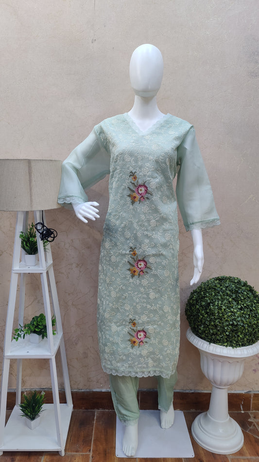 L-42 / Grey's Green / Mul Chanderi XL-44 / Grey's Green / Mul ChanderiMul Chanderi Kurti With pant and Dupatta M91790/GB