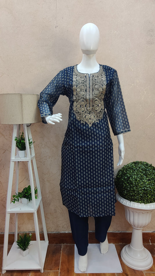Black / S-38 / Chinon Black / M-40 / Chinon Black / L-42 / Chinon Black / XL-44 / ChinonChinon Kurti with pant and dupatta set M92300AUR
