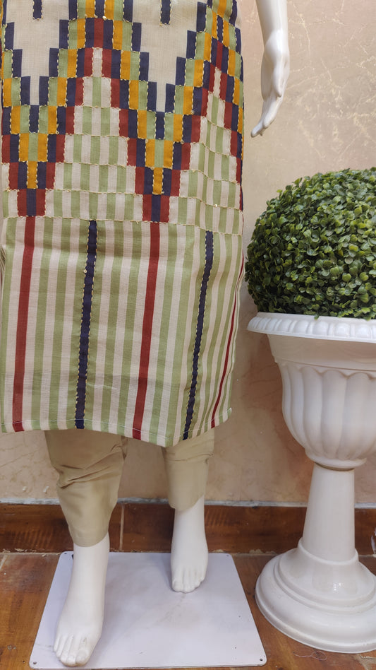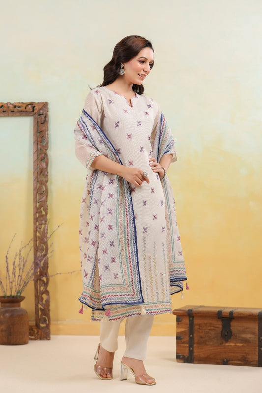 S-38 / Off-white / Cotton M-40 / Off-white / Cotton L-42 / Off-white / Cotton XL-44 / Off-white / CottonChanderi Kurti with pant and Dupatta. OM91970GB