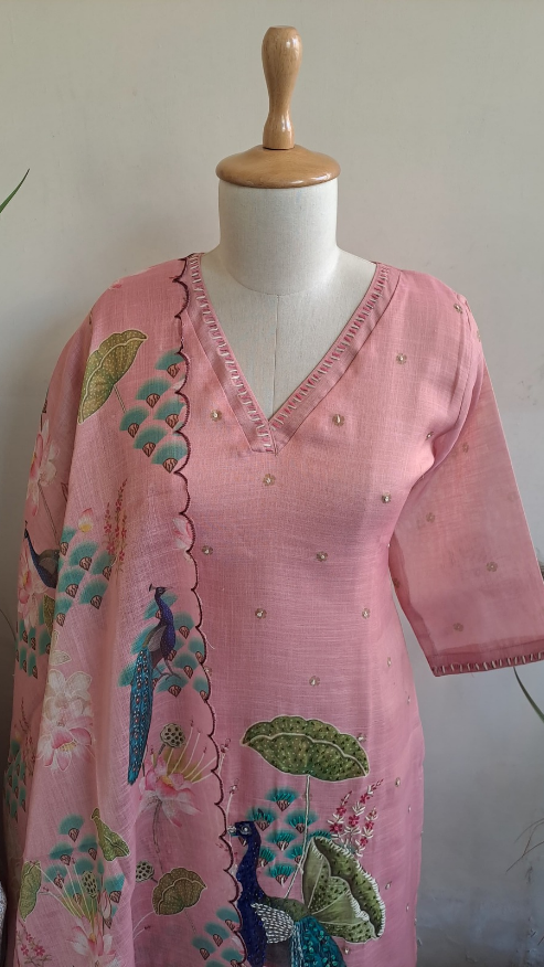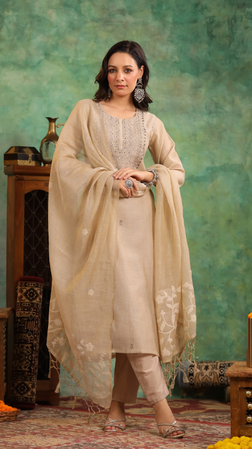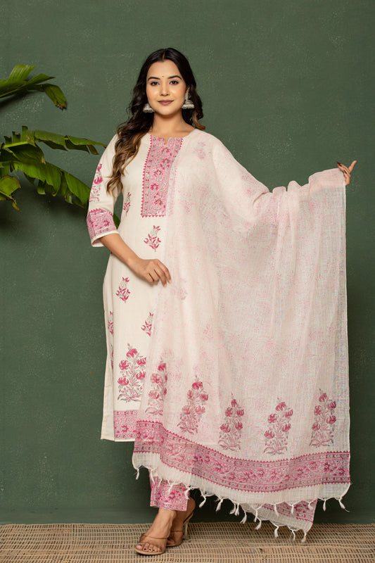 Linen Cotton kurti with pant and Dupatta M91050/FL