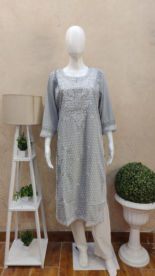 S-38 / Grey / Muslin M-40 / Grey / Muslin L-42 / Grey / Muslin XL-44 / Grey / MuslinMuslin Kurti with pant and Dupatta. OM91640GB