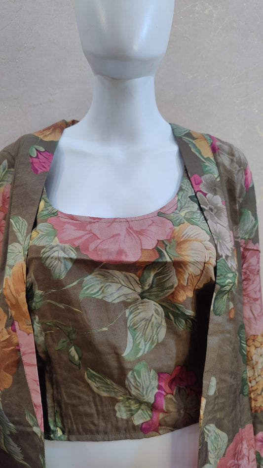 L-42 / Multicolor / Muslin XL-44 / Multicolor / MuslinMuslin Crop top with Shrug and pant M91565COT