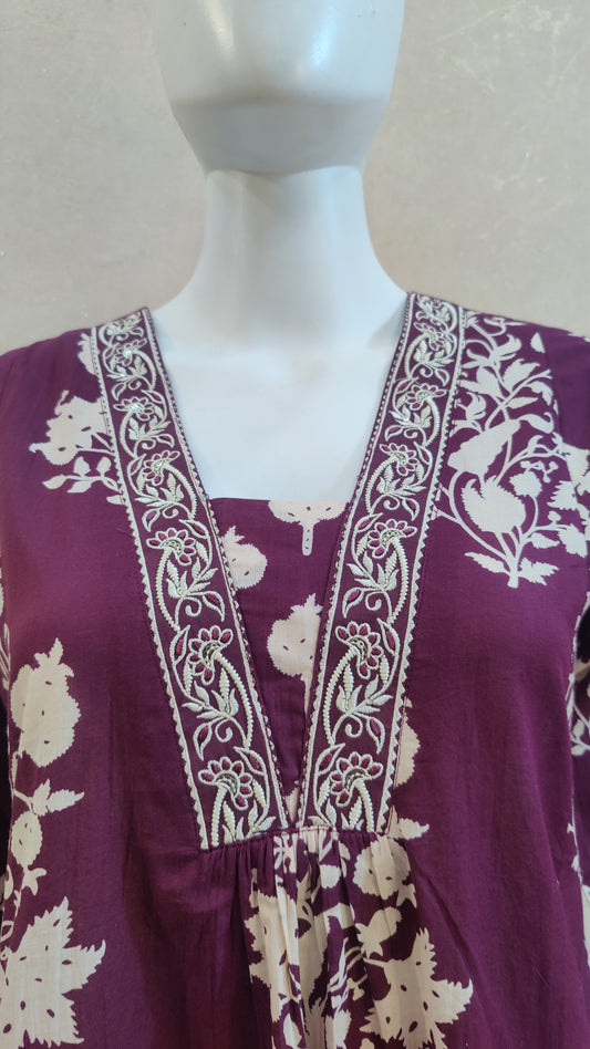 Pure Cotton Anarkali kurti with pant and Dupatta