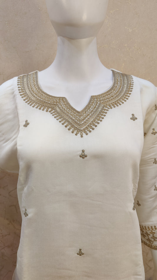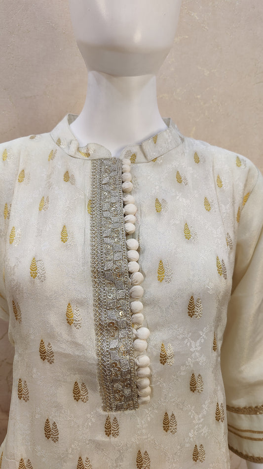 Creem / S-38 / Silk Creem / M-40 / Silk Creem / L-42 / Silk Creem / XL-44 / SilkSilk Kurti With Pant And Dupatta set M91195AUR