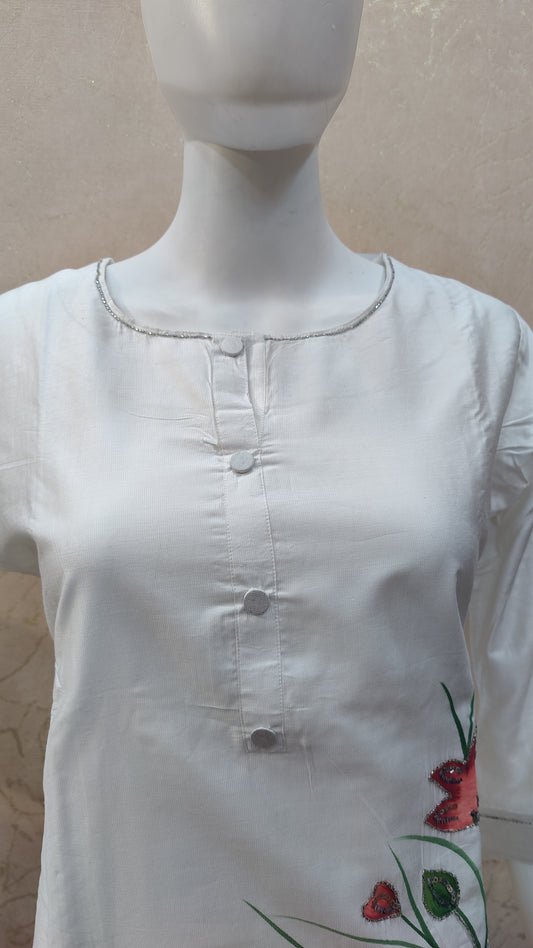 S-38 / Off-white / Cotton M-40 / Off-white / Cotton L-42 / Off-white / Cotton XL-44 / Off-white / CottonSoft Cotton kurti with pant and dupatta M91380/GB