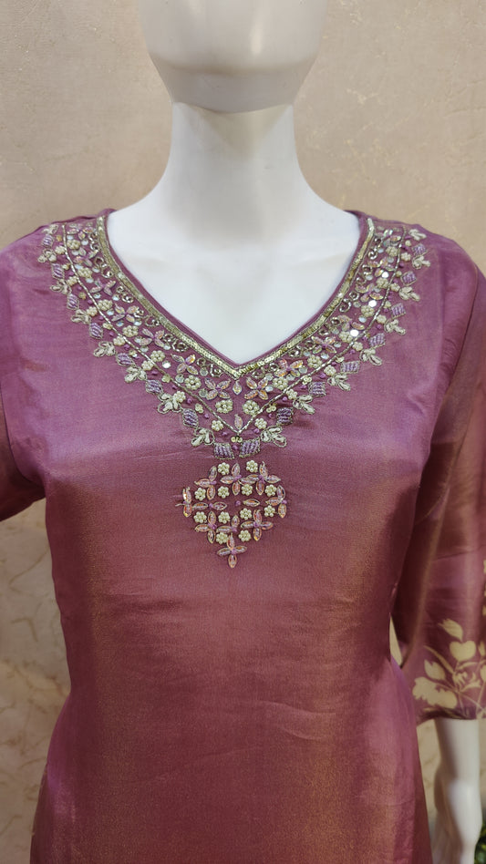 Beige / L-42 / Tissue Silk Beige / XL-44 / Tissue SilkTissue Silk Kurti with pant and dupatta set M92400AUR