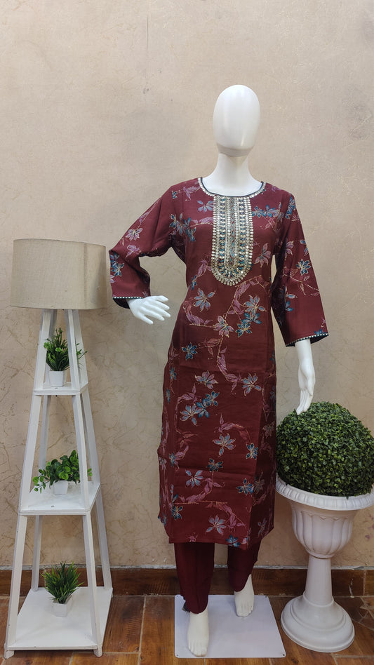 Pure Cotton Anarkali kurti with pant and Dupatta