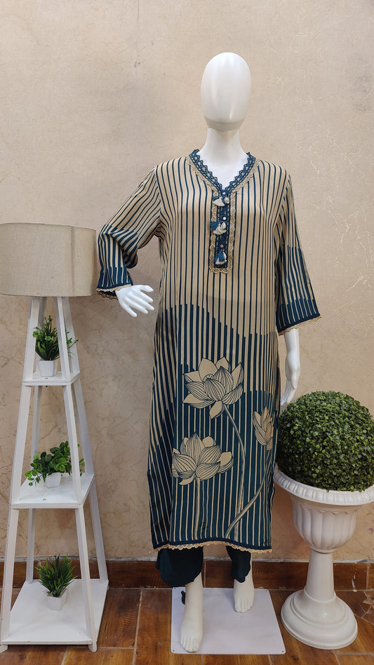 Pure Crape Kurti with pant and Dupatta. OM91750GBA