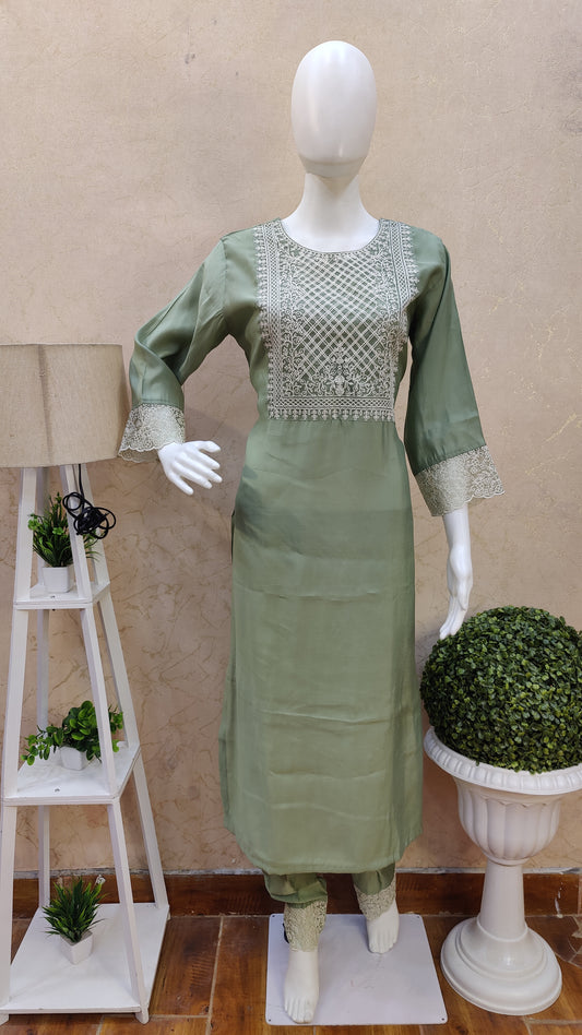 Silk kurti with pant and Dupatta M91565AMTMUSL
