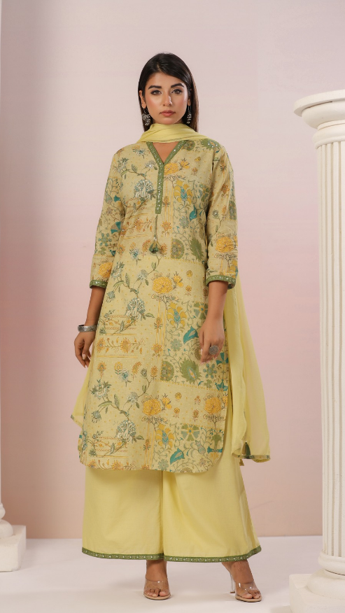 Pure Cotton Kurti with pant and dupatta M91565/FL