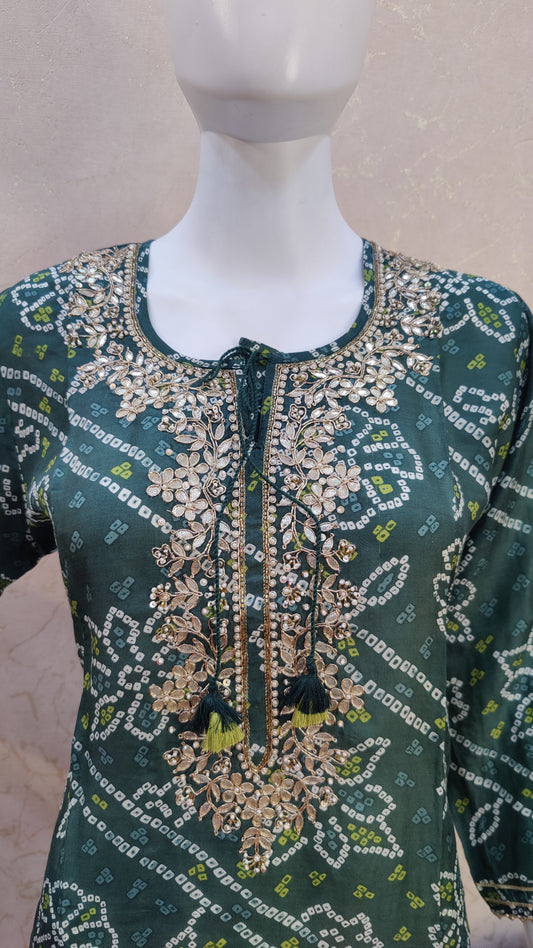 M-40 / Blue / Muslin XL-44 / Blue / MuslinPure Muslin Bandhej Kurti with pant and Dupatta M92200MUSLNI