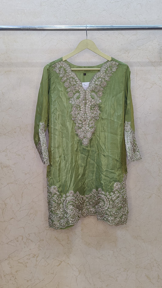 S-38 / Green / Cotton M-40 / Green / Cotton L-42 / Green / Cotton XL-44 / Green / CottonPure Muslin Kurti with pant OM91485GB