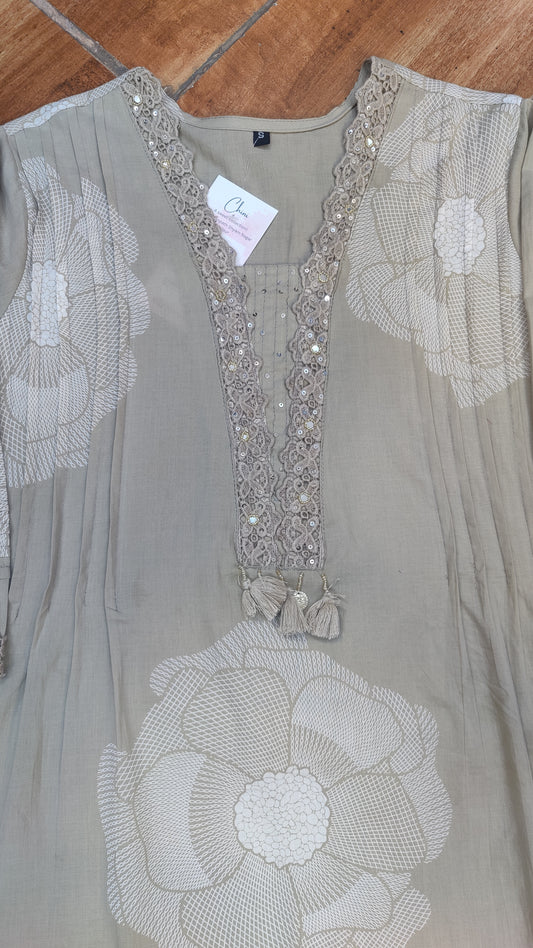 Brown / S-38 / Mul Chanderi Brown / M-40 / Mul ChanderiMul Chanderi Kurti with pant and dupatta set. M92400