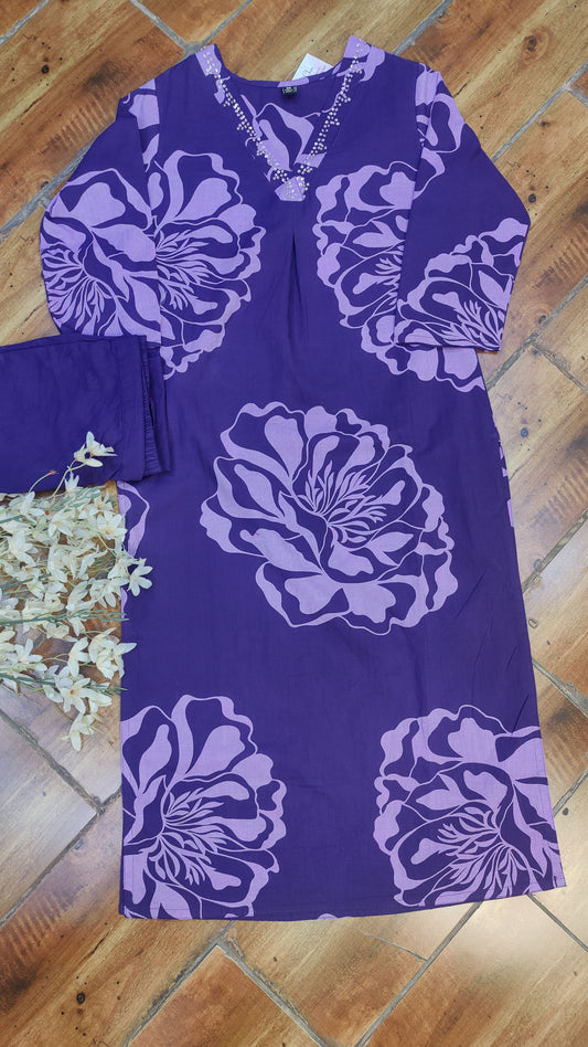 S-38 / Purple / Cotton M-40 / Purple / Cotton L-42 / Purple / Cotton XL-44 / Purple / CottonPure Cotton kurti with pant and dupatta M8870SS