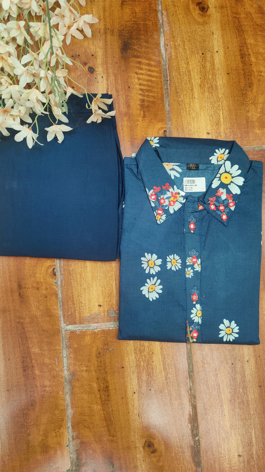 S-38 / Blue / Cotton M-40 / Blue / Cotton L-42 / Blue / Cotton XL-44 / Blue / CottonPure Cotton kurti with pant M9920/GB