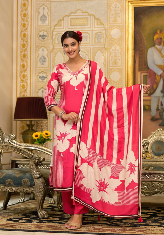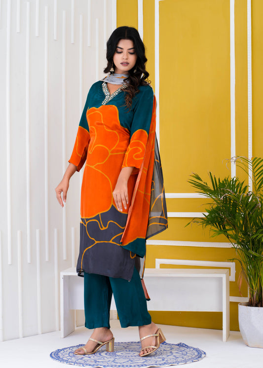Pure Crape Kurti with pant and Dupatta. OM91750GBA