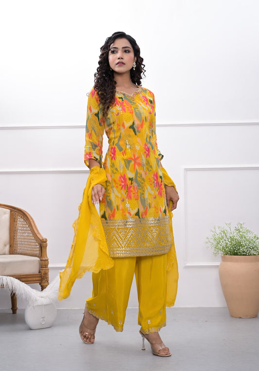 Pure Chinon kurti with pant and Dupatta M91930AUR