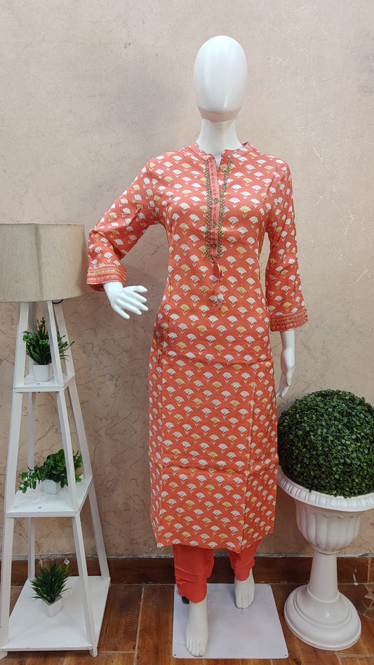 Pure Cotton kurti with pant and Dupatta M91050/FL