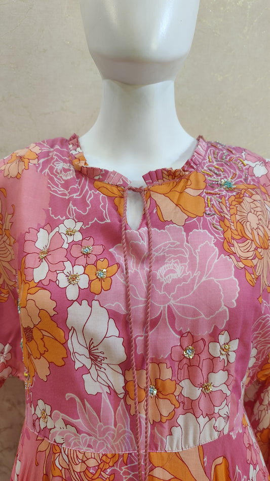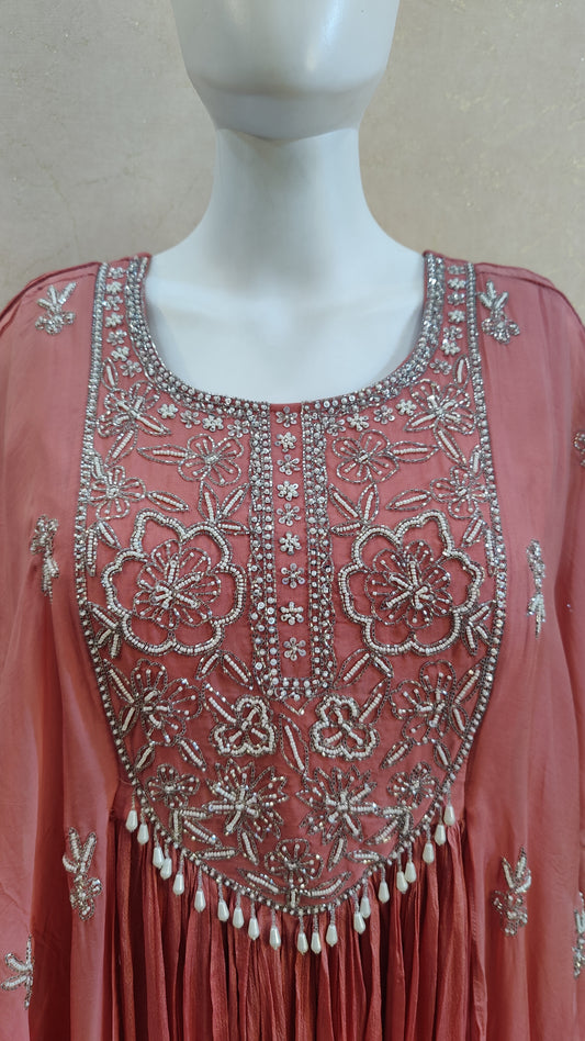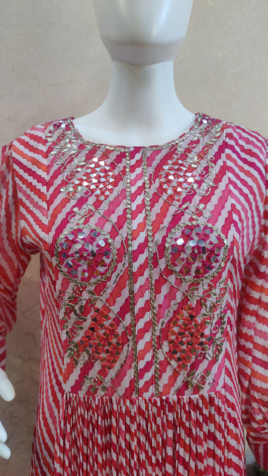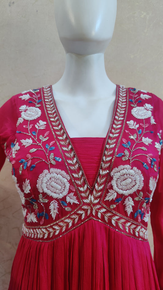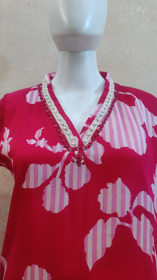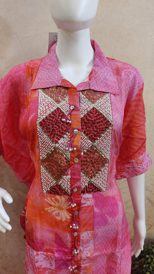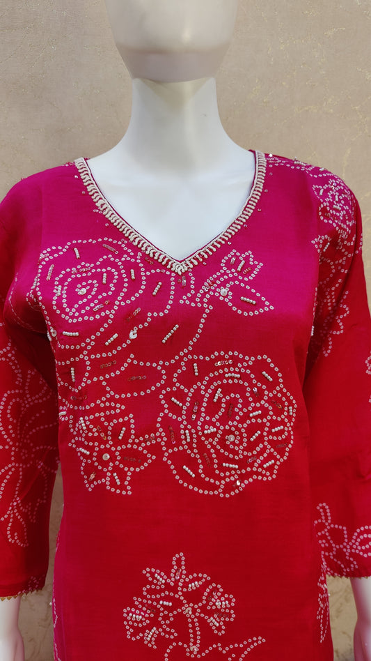 S-38 / Pink / Chinon M-40 / Pink / Chinon L-42 / Pink / Chinon XL-44 / Pink / ChinonPure Chinon Kurti with pant and dupatta M91930/AUR