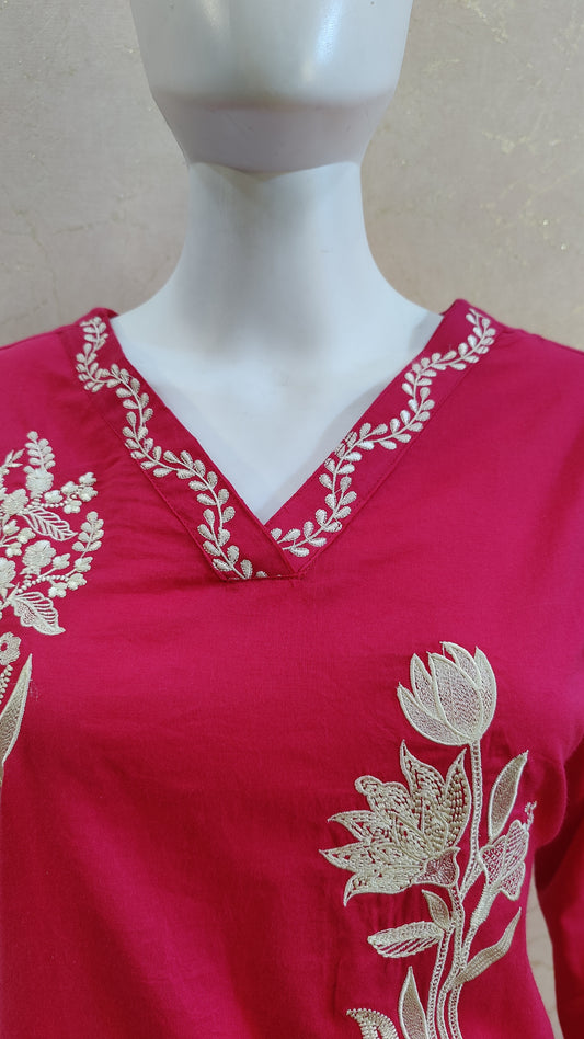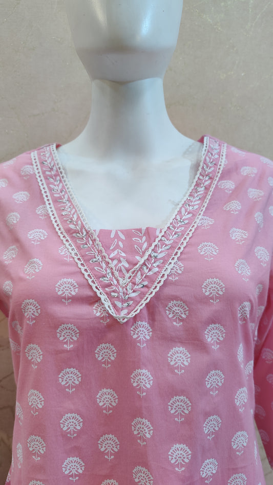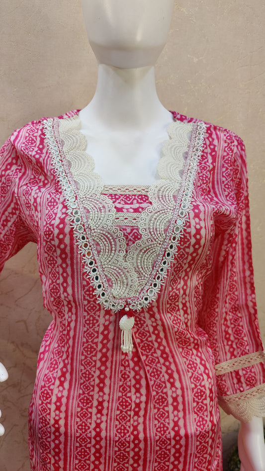 S-38 / Pink / Cotton M-40 / Pink / Cotton L-42 / Pink / Cotton XL-44 / Pink / CottonPure Cotton Kurti with pant and Dupatta M1025/AU