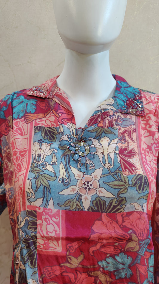 Pure Muslin Kurti with pant MRJ91525Muslin