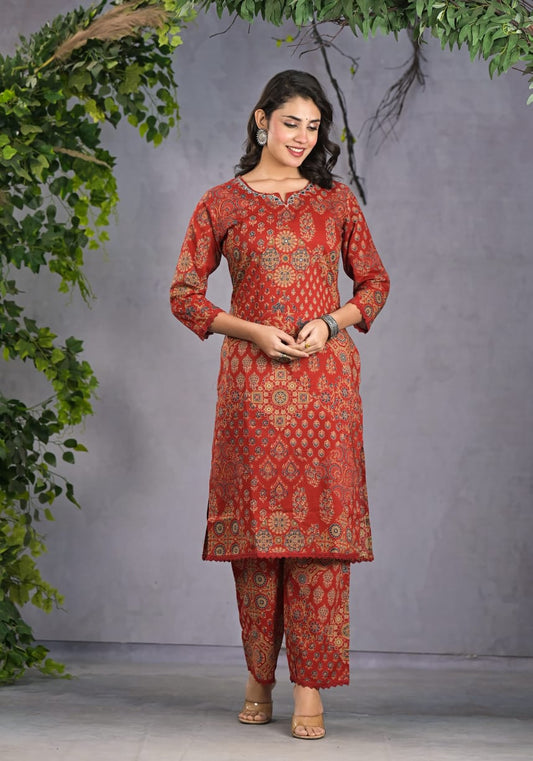 Pure Cotton kurti with pant and dupatta M91050RSP