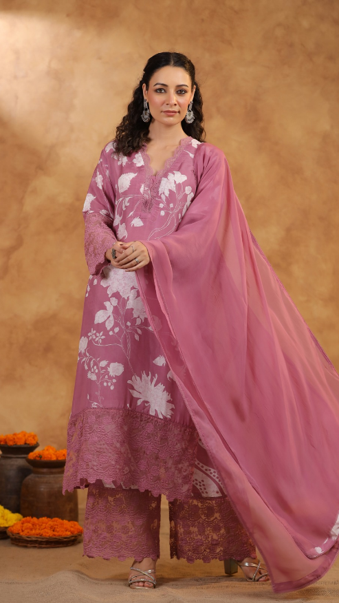 Pure Muslin Kurti with pant and Dupatta HM91500