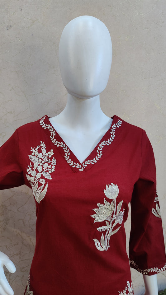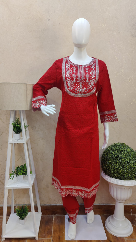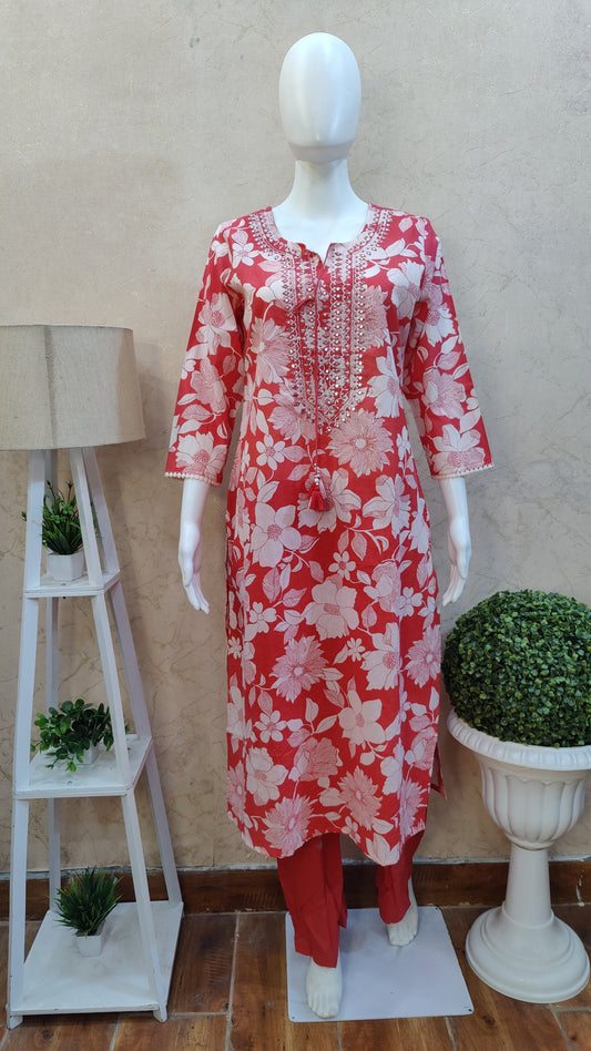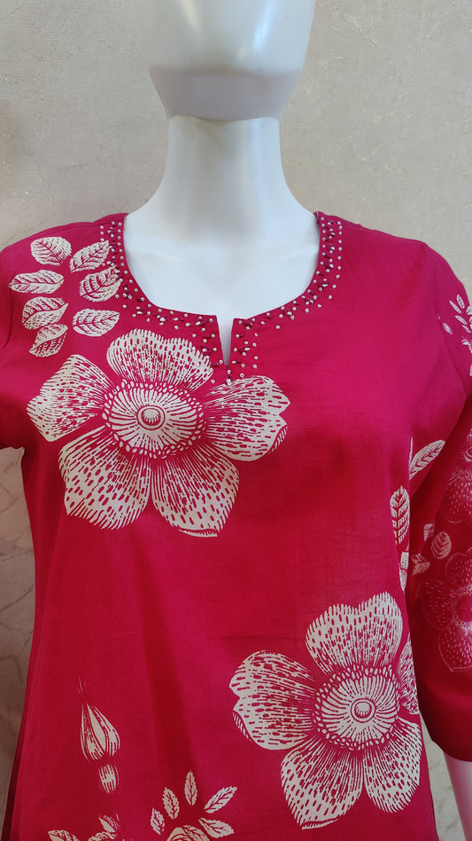 S-38 / Cotton / Red M-40 / Cotton / Red L-42 / Cotton / Red XL-44 / Cotton / RedPure Cotton kurti with pant and dupatta M9920/SS