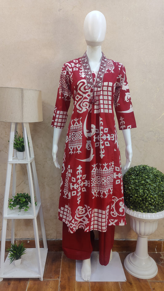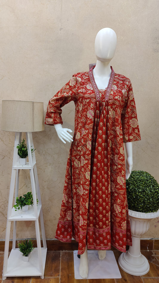 Pure Cotton Anarkali kurti with pant and Dupatta