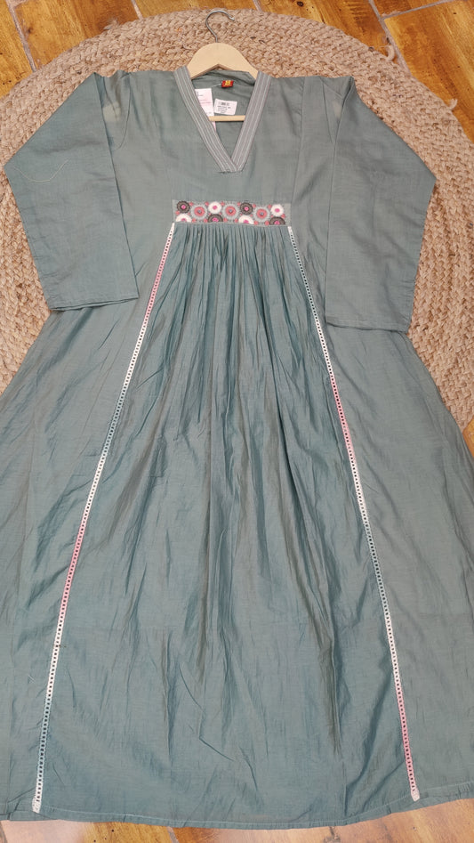 Grey's Green / S-38 / Mul Cotton Grey's Green / M-40 / Mul Cotton Grey's Green / L-42 / Mul Cotton Grey's Green / XL-44 / Mul CottonMuslin kurti with pant and dupatta set. M91125GLS