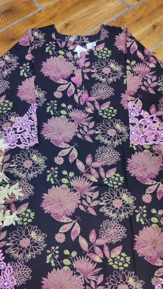 Purple / S-38 / Mul Cotton Purple / M-40 / Mul Cotton Purple / L-42 / Mul Cotton Purple / XL-44 / Mul CottonTissue Silk Kurti with pant and dupatta. M92200GB
