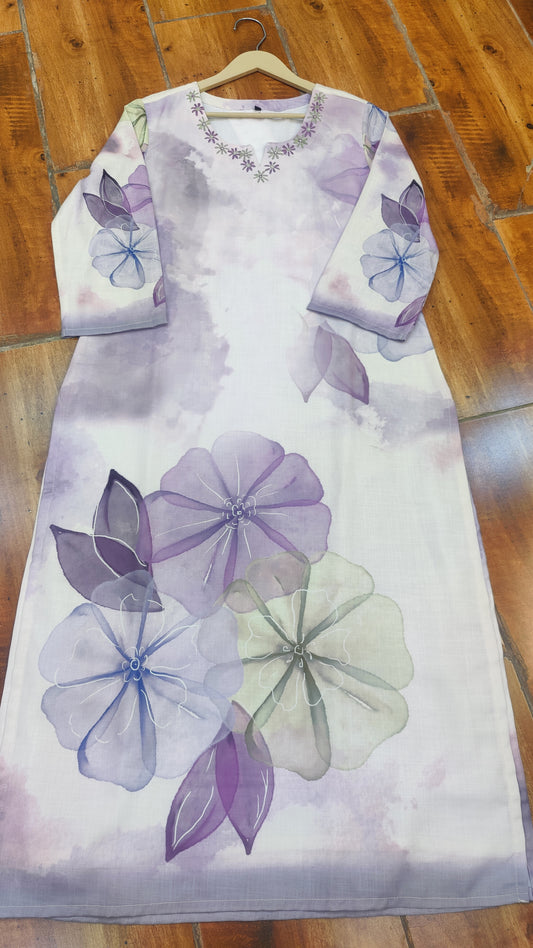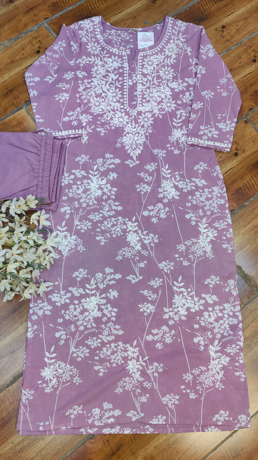 Purple / S-38 / Mul Cotton Purple / M-40 / Mul Cotton Purple / L-42 / Mul Cotton Purple / XL-44 / Mul CottonSilk Kurti with pant and Dupatta set. M91850AUR