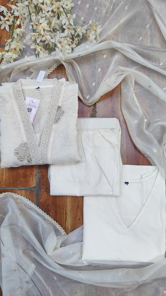 S-38 / Off-white / Cotton M-40 / Off-white / Cotton L-42 / Off-white / Cotton XL-44 / Off-white / CottonSoft Cotton kurti with pant and dupatta M91380/GB