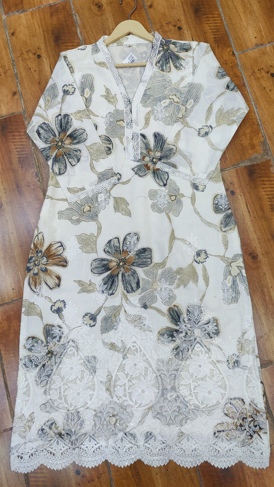 S-38 / Off-white / Cotton M-40 / Off-white / CottonSoft Cotton kurti with pant and dupatta M91500/GB