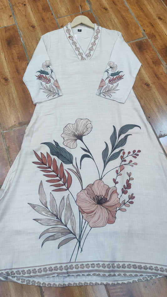 Beige / S-38 / Roman silk Beige / M-40 / Roman silk Beige / L-42 / Roman silk Beige / XL-44 / Roman silkRoman Silk Kurti With Pant And Dupatta set M91125SS