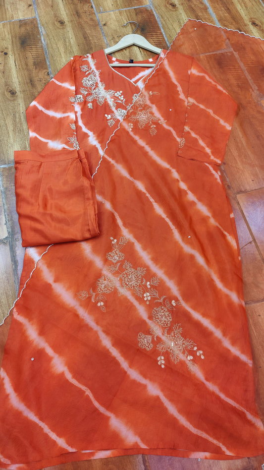 Pure Silk Lehariya Kurti with pant and Dupatta. M92100RF