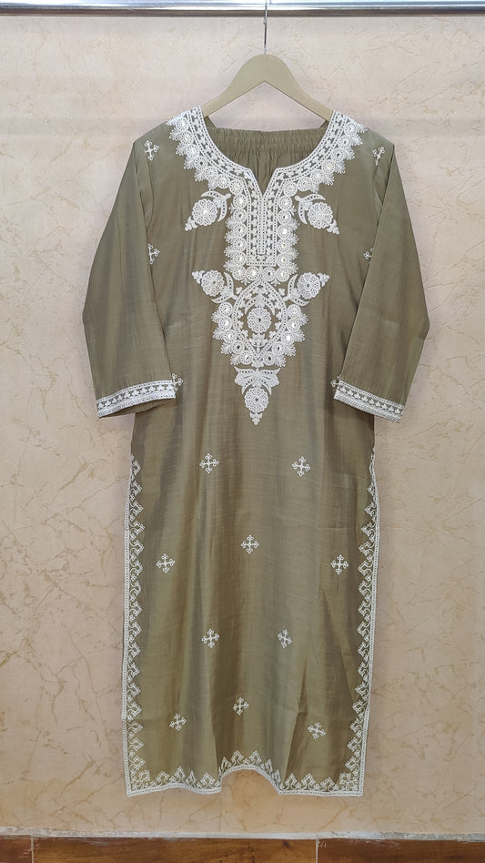 L-42 / Grey's Green / Mul Chanderi XL-44 / Grey's Green / Mul ChanderiMul Chanderi Kurti With pant and Dupatta M91790/GB