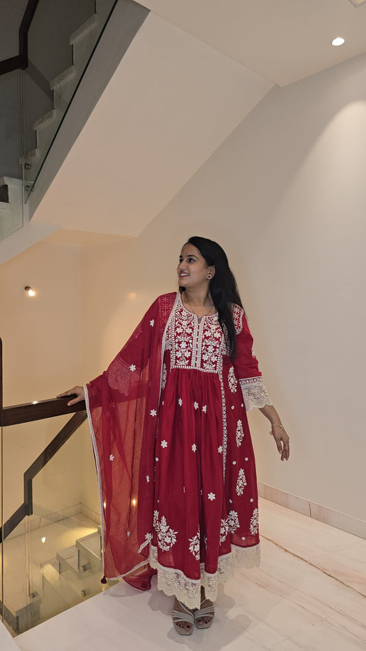 Red / M-40 / Mul Chanderi Red / L-42 / Mul ChanderiMul Chanderi kurti with pant and dupatta set M92300RF