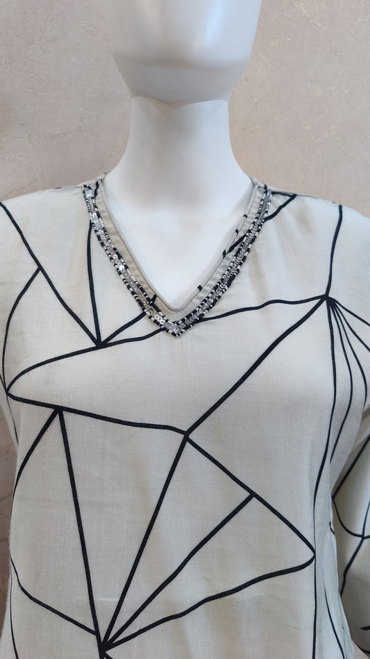 S-38 / Off-white / Cotton M-40 / Off-white / Cotton L-42 / Off-white / Cotton XL-44 / Off-white / CottonPure Cotton Kurti with pant and dupatta M91425/GB